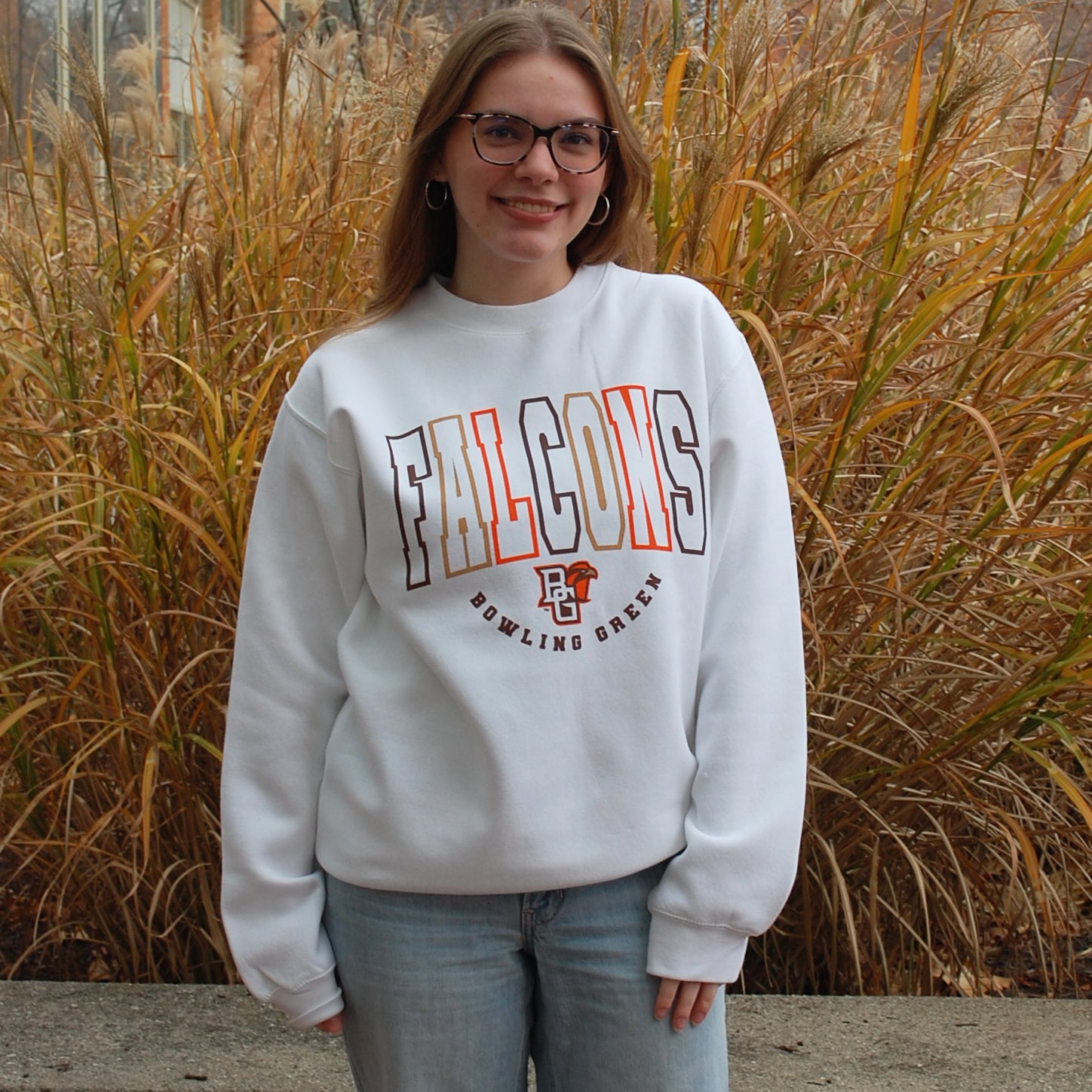 A super cute, retro-inspired crew with multicolored Falcons text and a fun peekaboo design. Bright, playful, and perfect for adding a little pop to your everyday look.
