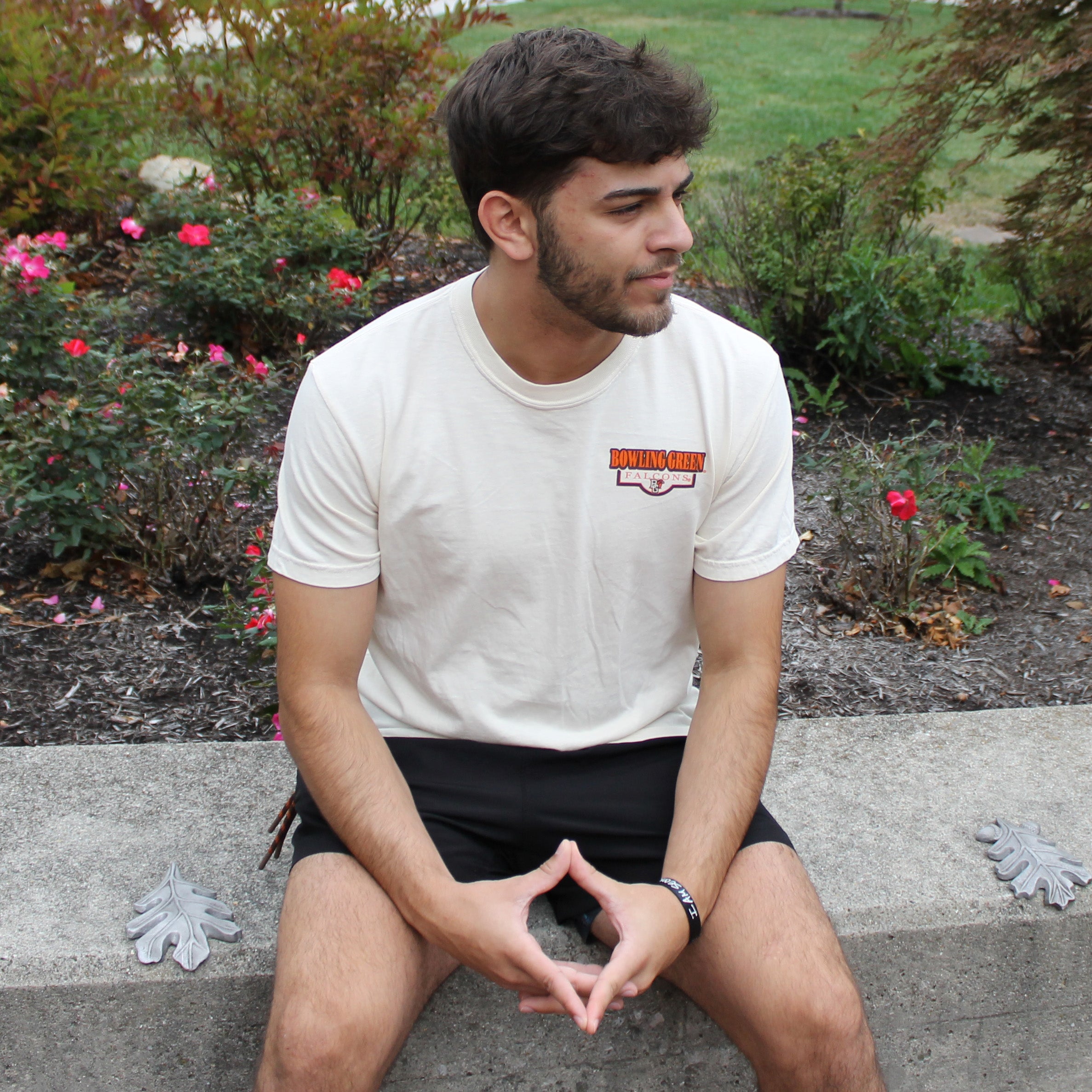 Show your Falcon pride with this cream-colored tee! The back features a playful Labrador carrying a football with “Saturday Traditions,” while the front has a subtle left-shoulder graphic. Comfortable and casual, it’s perfect for game days, campus life, or tailgates. Celebrate BGSU spirit in style!