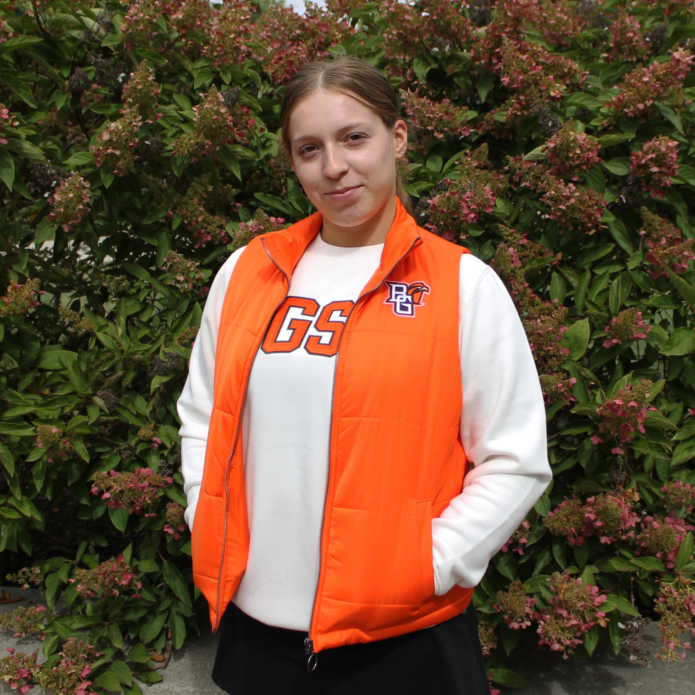 This vibrant orange ladies’ puffer vest is both stylish and practical, featuring a cozy quilted design for lightweight warmth. The classic look is finished with a Peekaboo logo on the top left shoulder, making it perfect for layering while showing Falcon pride.