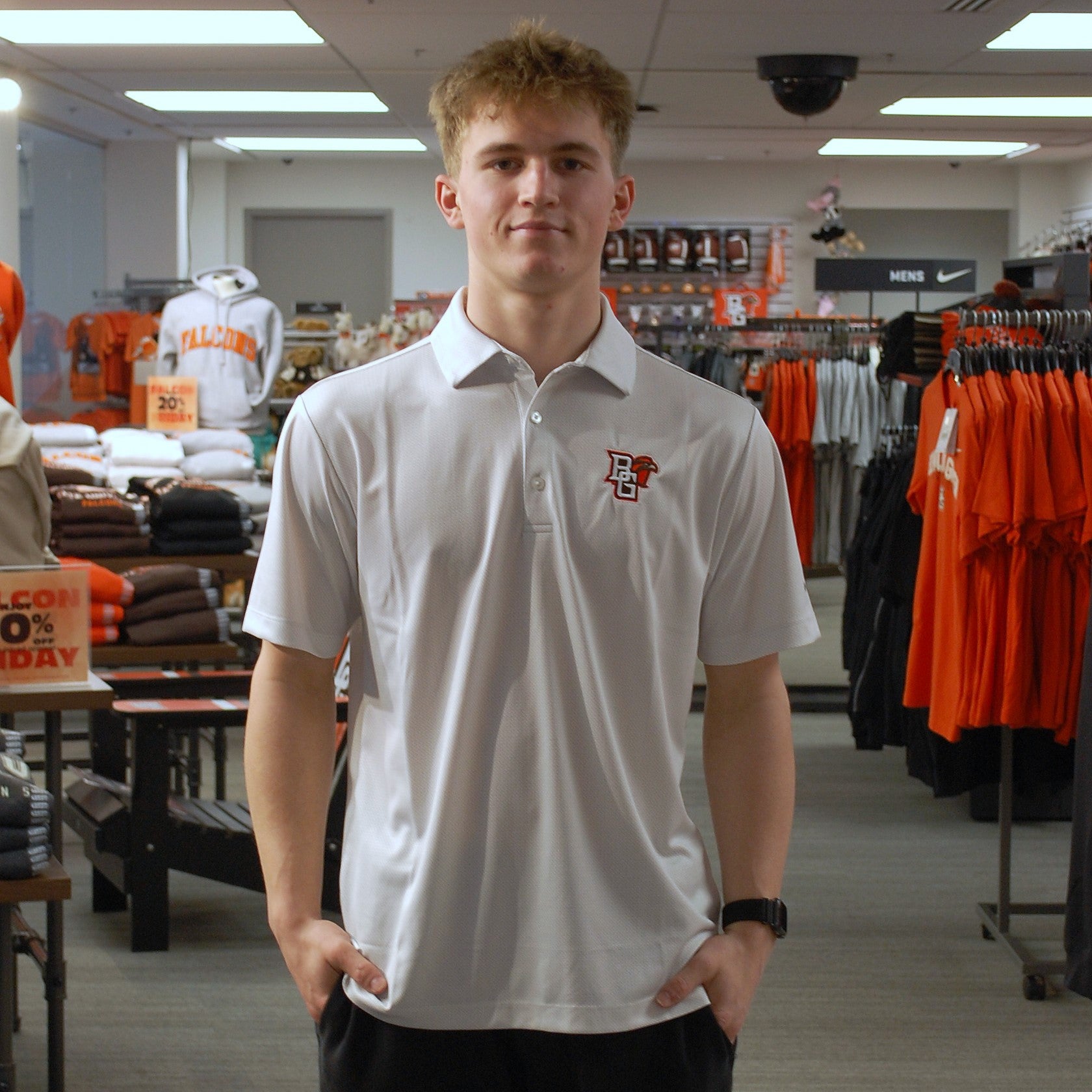 A polished performance polo designed for comfort and movement. Featuring flexible, breathable fabric and subtle peekaboo BGSU detailing, it’s a great choice for the course, the office, or everyday Falcon style.